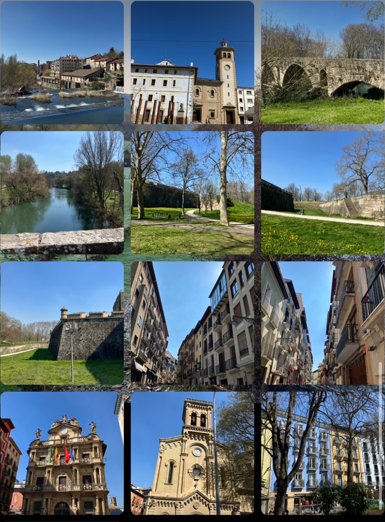 Another hour of walking into the city centre, via newer and then historic streets, across the rio again at the Puente de Magdalena and into the old town via the historic city walls and the Portal de Francia. Streets alive with people celebrating the end of a fun run from Zubiri, bars and restaurants packed and spilling out into the narrow cobbler streets, and indeed I overshot my intended end and nearly headed out of town.