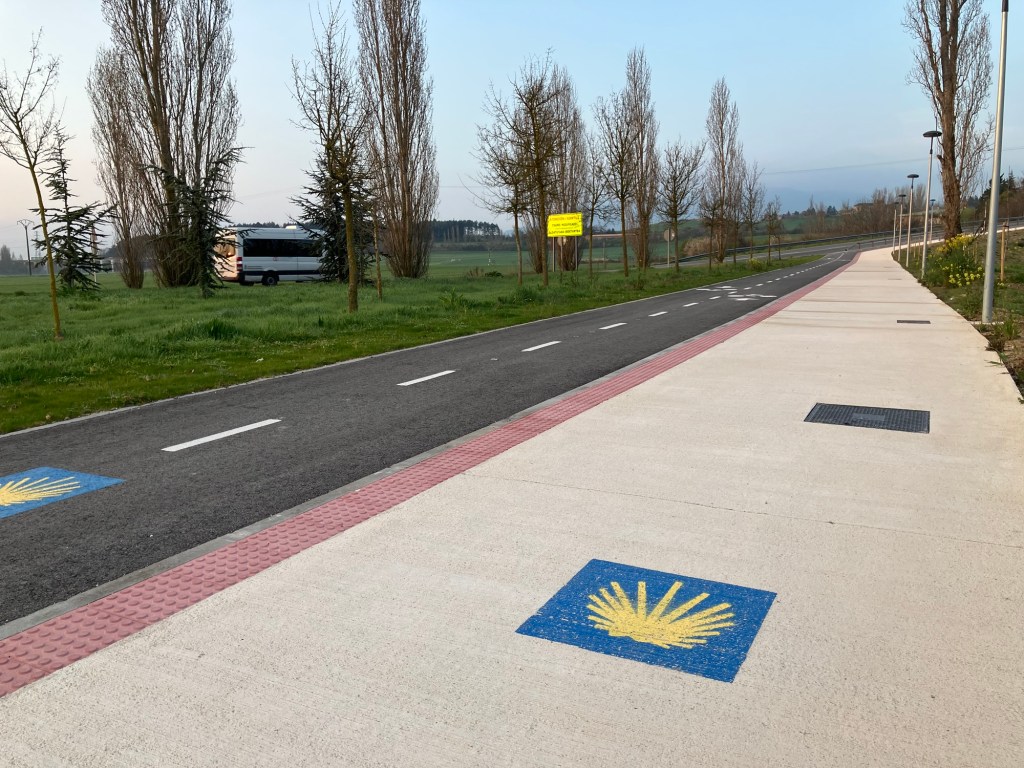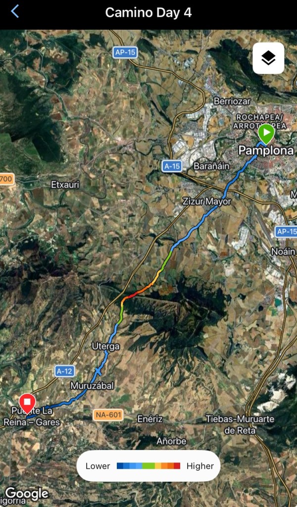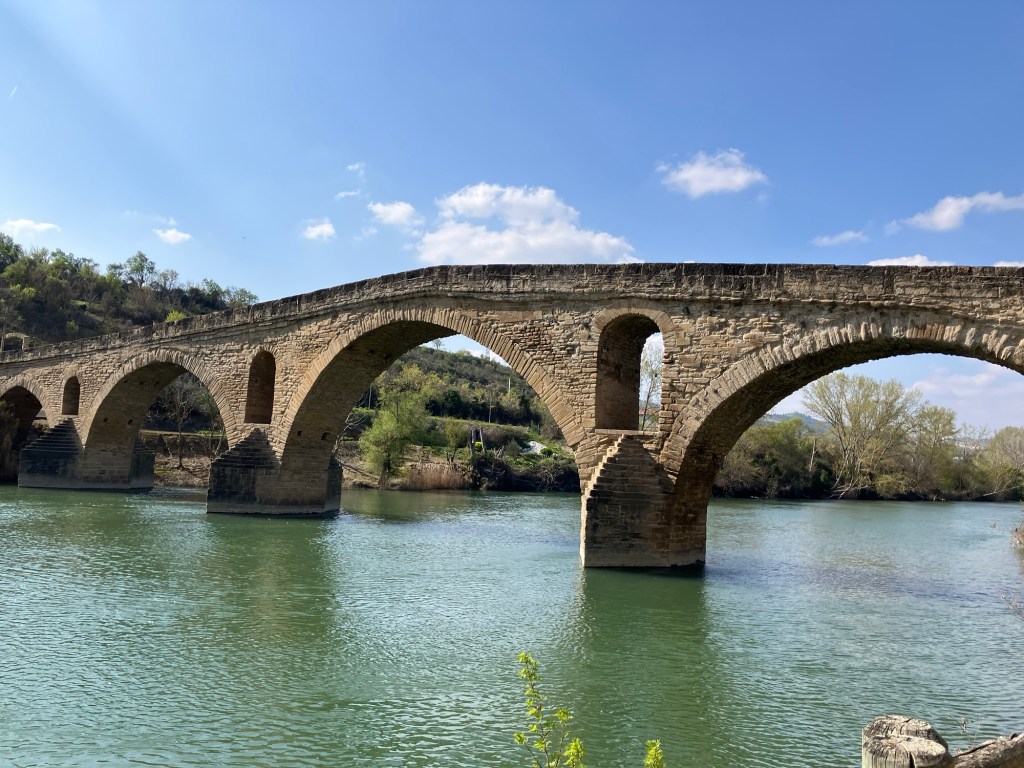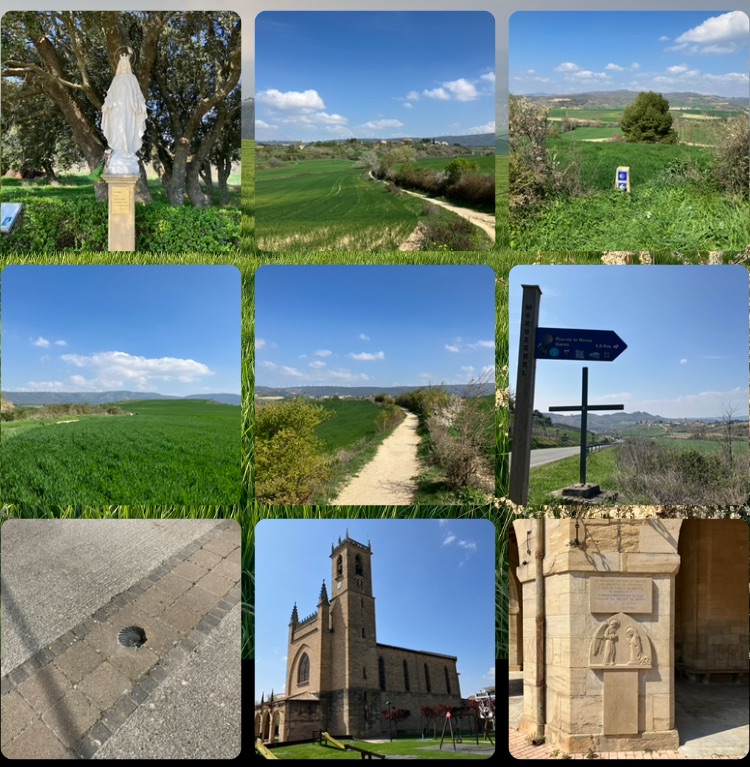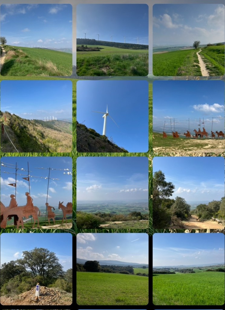 Another banger of a day with more blue skies, green fields, and charming Spanish towns. Left Pamplona early so as to be over the day’s wee hill before the sun was too high in the sky.