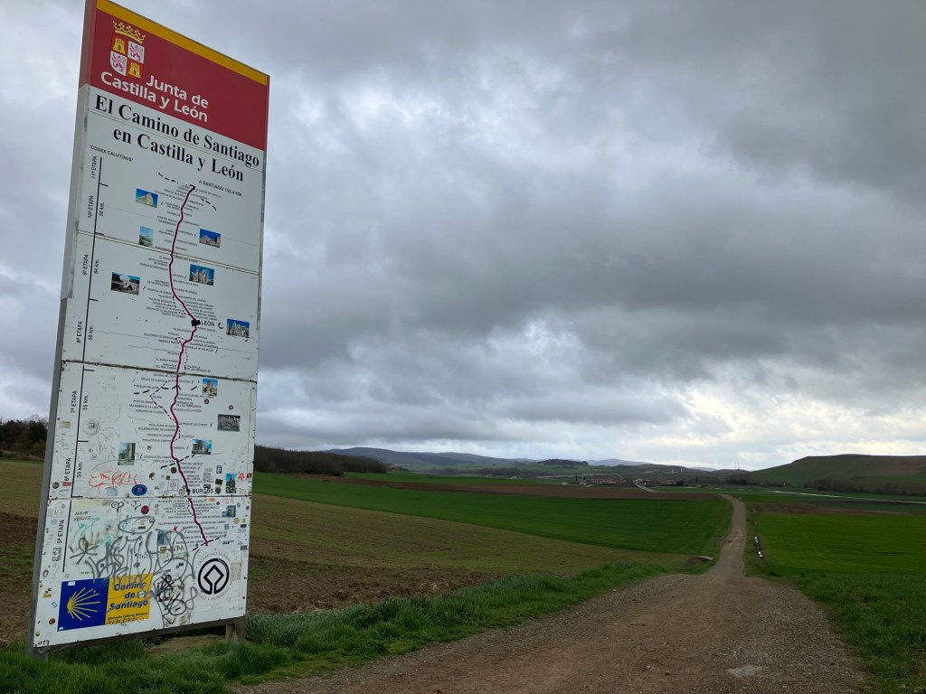 Also crossed the border into the next autonomous region of Spain, Castilla y Leon, marked by a wonderfully oversized and mildly bonkers vertical map of their section of the Camino Francés.