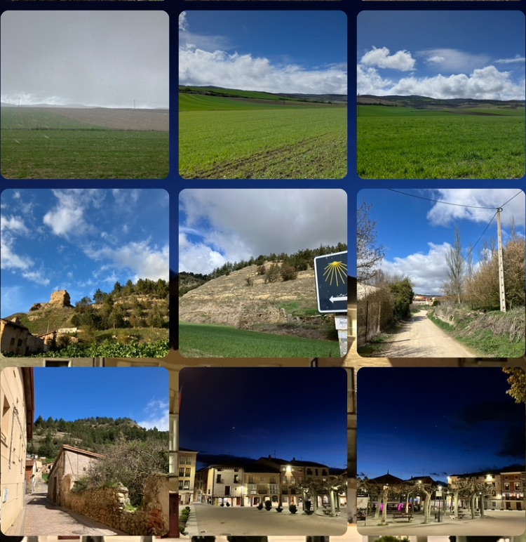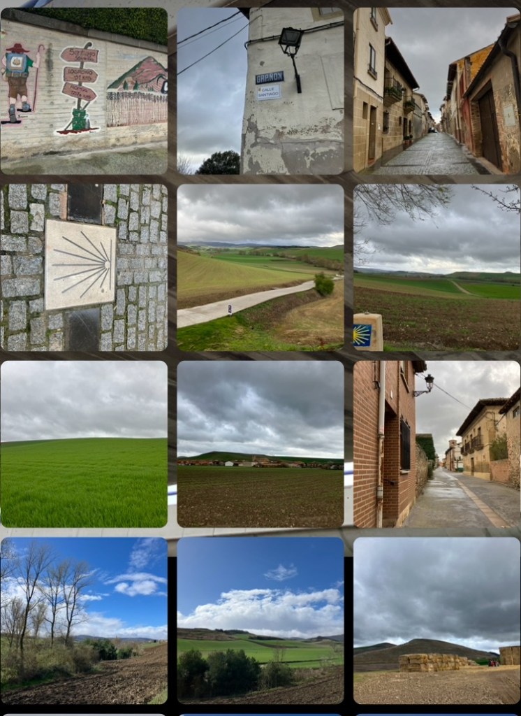 Several small towns passed thru today – Grañon, Redecilla del Camino, Castildelgado, Viloria de la Rioja, and Villamayor. Phew! Only stopped in the last of these – for an excellent bocadillo con tortilla y queso / egg and cheese sandwich, and super helpful coffee.